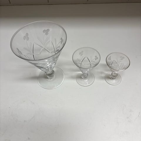 12 st Skruf glas snapsglas på fot . H 8 cm och 3,5 cm i diameter upptill, fot 4,2 cm