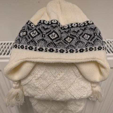 Köpt på marknad - virkad för hand. Troligen akryl. Använd ett fåtal gånger. Hämtas i Alvik.