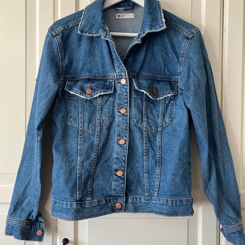 Gina Tricot övriga jackor i storlek M, blå färg och tillverkad i polyester. Jackan har knäppning fram och detaljer i kontrasterande färg på ärmar och krage.