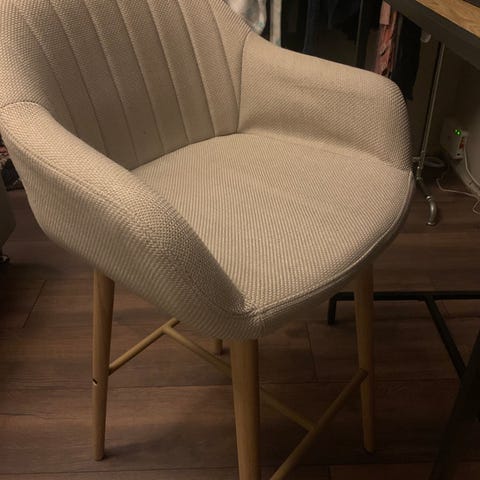 Mio Aage Petersen barstol i beige sammet med metallben. Stolens design är av Aage Petersen och den är avsedd för användning vid bardisk eller köksö. Materialval och färg ger en mjuk och neutral ton som passar i olika inredningsmiljöer.