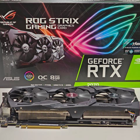 MSI Gaming GeForce RTX 2070 grafikkort med dubbla fläktar för kylning. Grafikkortet tillhör Nvidias RTX-serie och är anpassat för spel och grafikintensiva applikationer.
