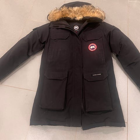 Canada Goose jacka/parkas i brunt. Etiketten säger storlek L men upplevs som M. Något äldre modell men väldigt fint skick, inget tecken på slitage. Dunstoppning, vattenavvisande yttersida. Kommer från ett rök- och djurfritt hem.