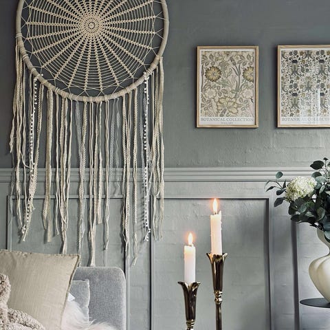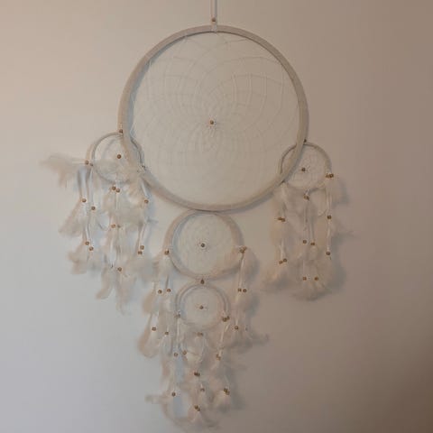 Naturvit/ljusbeige drömfångare. Jättefin väggdekoration. Ca 72 cm i diameter. Ca 150 cm lång.