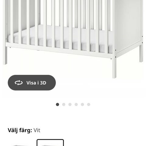 Vit spjälsäng i mycket fint skick, använd av ett barn. Inga skador, repor eller märken – som ny.