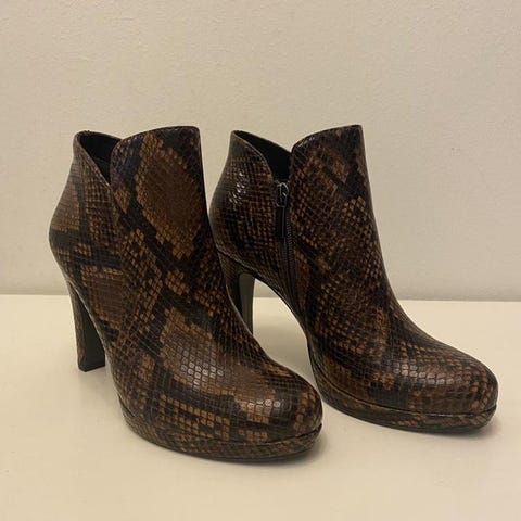 Supersnygga stövletter från Dasia i skinn. Dragkedja på insidan för att lätt kunna ta av och på. Dragkedjan på utsidan är dekoration. 9 cm hög klack (mätt från baksidan).