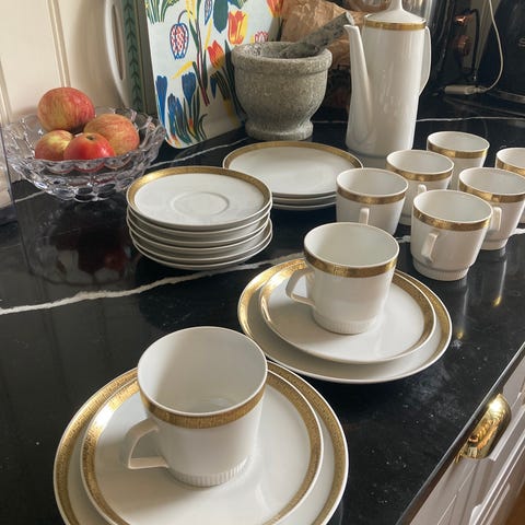 Små kaffekoppar med fat i porslin