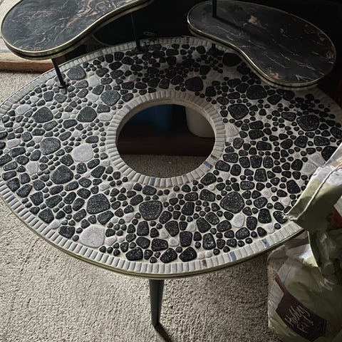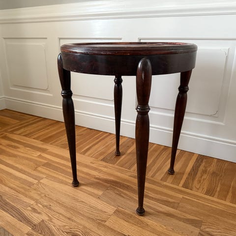 Bordet är ca 70 cm högt och ca 50 cm i diameter uppe på skivan. Det är från 80 talet och jag tror det är ikea