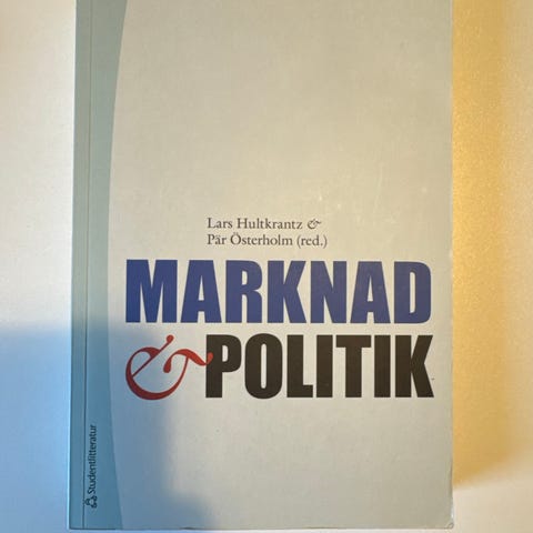 Kursbok som ger en tydlig introduktion till samspelet mellan marknadsekonomi och politiska beslut. Boken behandlar grundläggande ekonomiska begrepp och hur statlig styrning, regleringar och institutioner påverkar marknader och samhällsekonomi. Används inom ekonomi och samhällsvetenskapliga utbildningar.