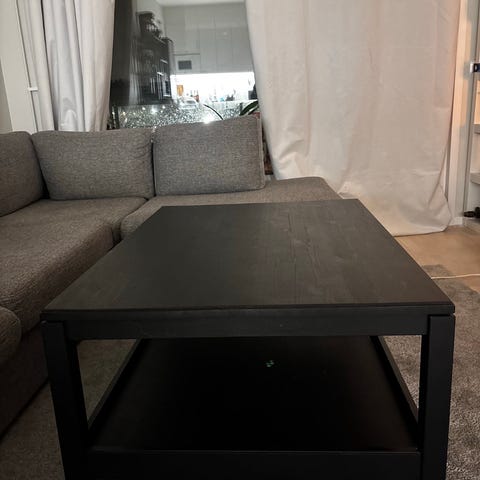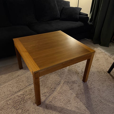 Ganska stort soffbord med en extra skiva undertill, Utfört i snyggt ljust lövträ,