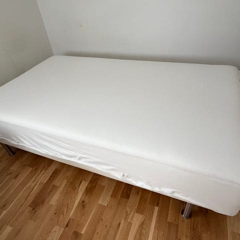 IKEA Sultan Selfors madrass med måtten 120x200 cm. Samt WellPur Gold bäddmadrass. Ingår även fina sängben i ek. Allt är i väldigt fint skick.
