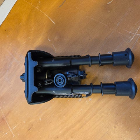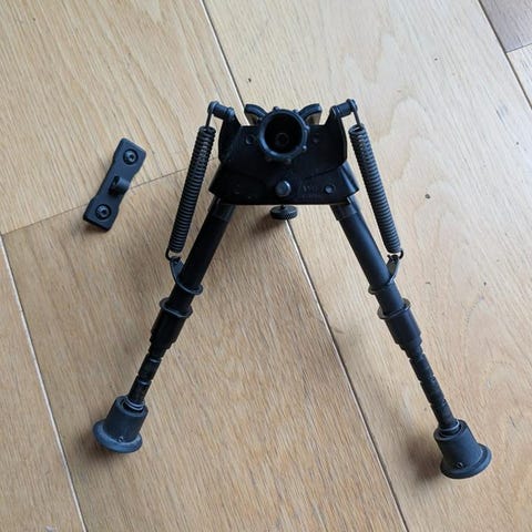 Harris benstöd, fungerar som den ska. Fästes på rembygelfästet. För sittande eller knästående skytte