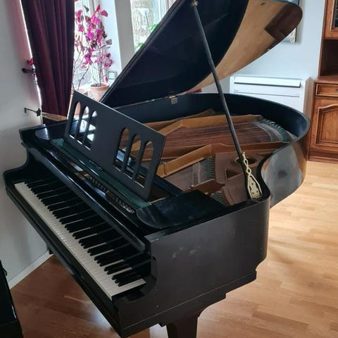Flygel av märke Ed Seiler, tillverkad 1928. Ca 1,6 x 1,48 lång respektive bred. Mycket patina i lacken, men fantastiskt fin klang och trevlig att spela på. Har också hållit stämningen mycket väl trots att den stått vid yttervägg utan justering i över 15 år.