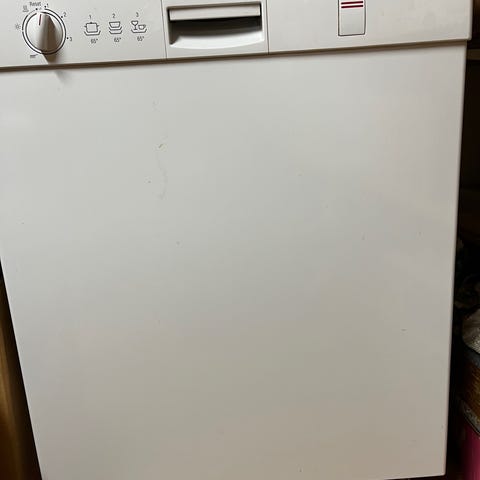 Bosch underbyggd diskmaskin med vit front. Maskinen har två utdragbara korgar för disk och är anpassad för inbyggnad under bänkskiva. Modellen är energieffektiv och har flera program för olika diskkategorier.