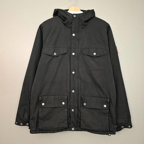 Fjällräven Greenland övriga ytterkläder i storlek M för kvinnor. Jackan är svart och tillverkad av polyester. Den är avsedd för utomhusbruk och har flera fickor framtill. Materialet är slitstarkt och anpassat för olika väderförhållanden.