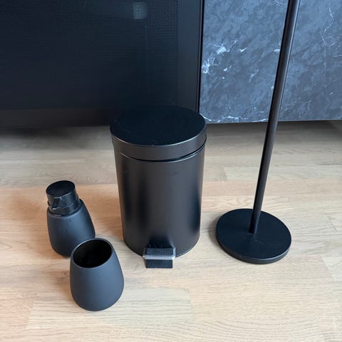 ✔ Skönhetsfläckar i form av små rostfläckar längst ned och lite skav på pinnen som håller rullen (se bild 3) – påverkar ej funktionen Passar både små och stora badrum.