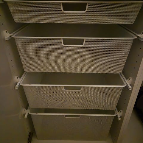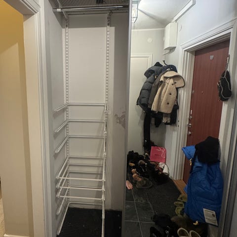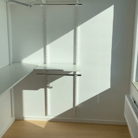 Elfa garderobssystem med hyllor och skjutdörrar