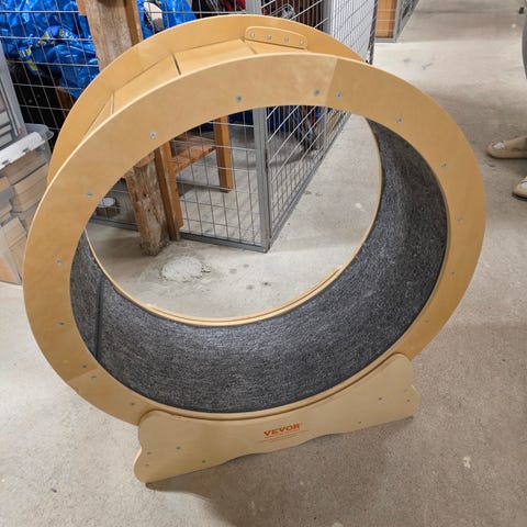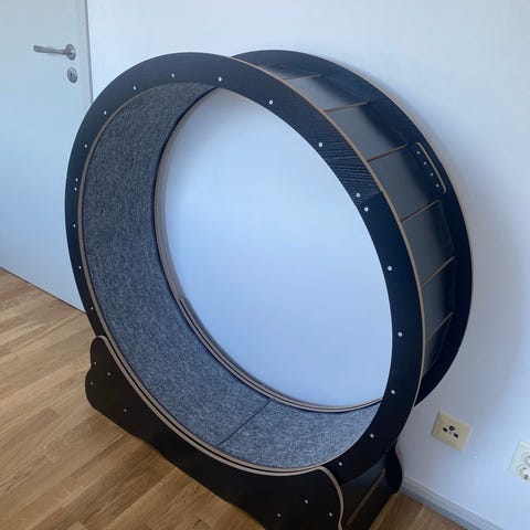 Motionshjul för katt i grå färg. Hjälper till att stimulera kattens aktivitet och motion. Passar för inomhusbruk.