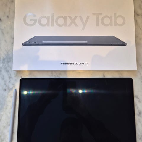 Säljer en Samsung Galaxy Tab S10 Ultra med tillhörande penna, skärmskydd och Spigen skal.