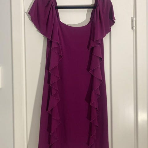 Yves Saint Laurent klänning i siden från 80 talet. Turkos botten med rosetter. Klänningen har vissa defekter, som exempelvis sömmar längs ärmarna som behöver sys. Överlag är skicket okay för en vintage klänning. Storleken motsvarar en svensk 36, passar även en 34