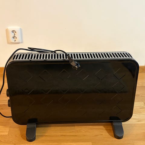 Bärbart element med 3 värmelägen (750 W, 1250 W och 2000 W), fläkt och justerbart termostat. 1,5 meter lång kabel med stickpropp.