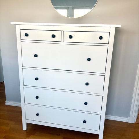 Hemnes byrå med 6 lådor. Hämtas av köpare.
