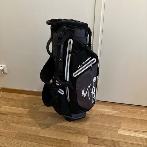 Wilson Staff Carry golfbag i färgerna röd och svart. Golfbagen är utrustad med flera fack och en bärrem för enkel transport. Den har stödben för att kunna stå upprätt på banan eller vid sidan av. En av dragkedjorna har hoppat ur som man kan se på sista bilden men det borde inte vara svårt att laga!
