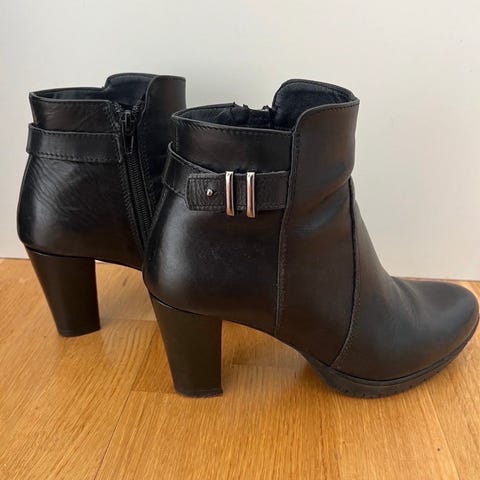 Svarta läderstövlar från Other Stories i storlek 38. Underbart mjukt skinn, låg klack, spetsig tå och dragkedja på insidan. Tyvärr är stövlarna för stora så de söker nytt hem. Var dyra i inköp, helt klart premium kvalitet!