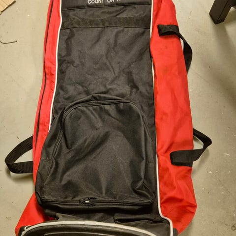 Den är i bra skick, det ingår två stycken löstagbara fickor om man vill ha med sig extra utrustning.