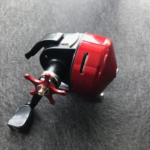 Denna i ett trevligt skick förmodligen väldigt lite använd. Stått hos samlare i många år och hjälper han minska ner. Nyservad med rengörning, abuolja och fett samt nypåspolad lina 0,20 inför nya äventyr, för den som vill. Annars trevlig klassiker att ha som prydnad :)