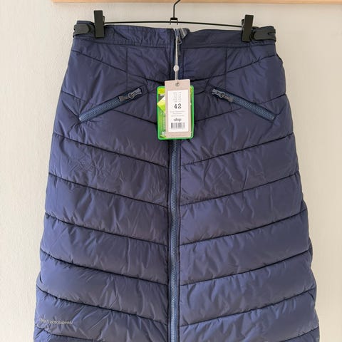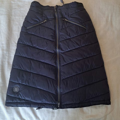 Uhup vadderad kjol i svart färg, storlek 36. Kjolen har dragkedja framtill och två fickor med dragkedja. Materialet är vadderat och ger extra isolering. Passar för användning vid kallare väder.
