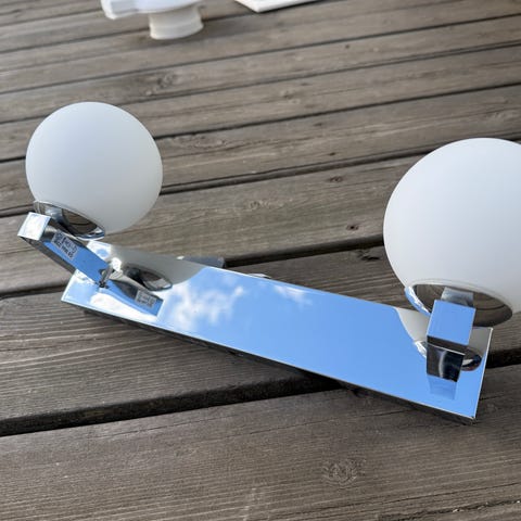 Säljer en stilren vägglampa Epsilon från premiumtillverkaren Astro Lightning Ltd i England. Ger ett behagligt ljus såväl uppåtriktat som nedåtriktat. Lämplig som armatur i ex.vis badrum/WC/gäst toalett. LED lampa men kan även användas med 25 W halogen. Nypris ca 1500.-.