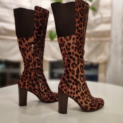 Unika vita stövlar i äkta läder från Écolé i storlek 39. Superfint cirkelmönster i kontrastfärg (beige) med perforeringar, samt bekväm låg klack med gulddetalj. Har sina skavanker här och där (se bilder), men ett par stövlar som du kommer vara ensam om att ha. Älskar dem, men är tyvärr för små för mig. Hoppas de hittar ett annat härligt hem.