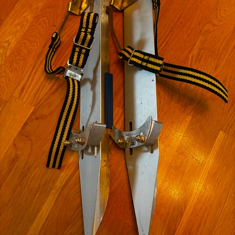 Lundhags Långfärdsskidor med längd på 50 cm. Utmärkt skick men en skruv är lite lös på under sidan, som jag har lite problem med att skruva tillbaka när jag skulle justera dem.