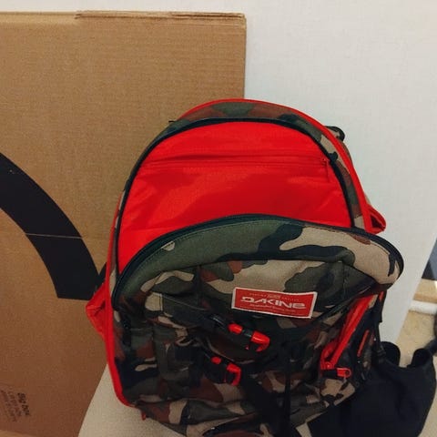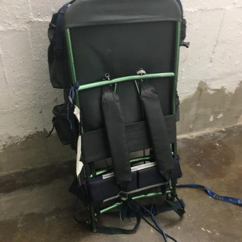 Robust ryggsäck i camouflage-mönster med stabil metallram.