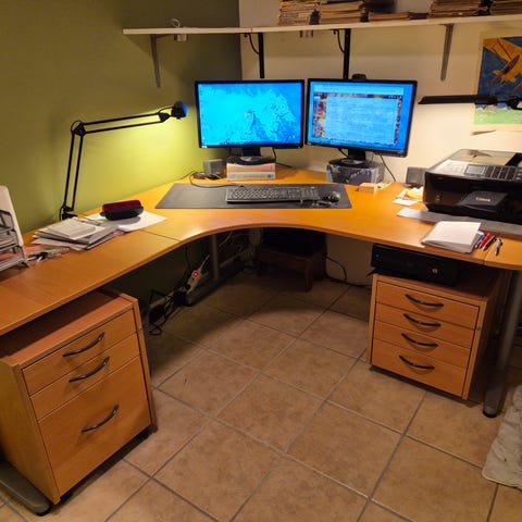Skrivbord IKEA - 2st, mått: 120x80 cm. Vit stativ, ekskiva.