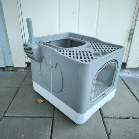 Extra hög i bakkant för att hindra hankatter från att kissa utanför.