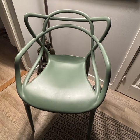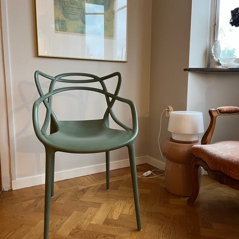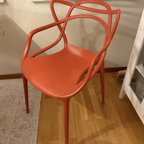 Stolen Masters är en vass hyllning till tre ikoniska stolar, omarbetade och nytolkade av det kreativa geniet Starck. De omisskännliga silhuetterna hos ”Serie 7” av Arne Jacobsen, ”Tulip Armchair” av Eero Saarinen och ”Eiffel Chair” av Charles Eames flätas samman till en kurvig hybrid för att ge liv åt en originell och tilltalande fusion av stilar. Masters är lätt, praktisk, stapelbar och kan även användas utomhus.