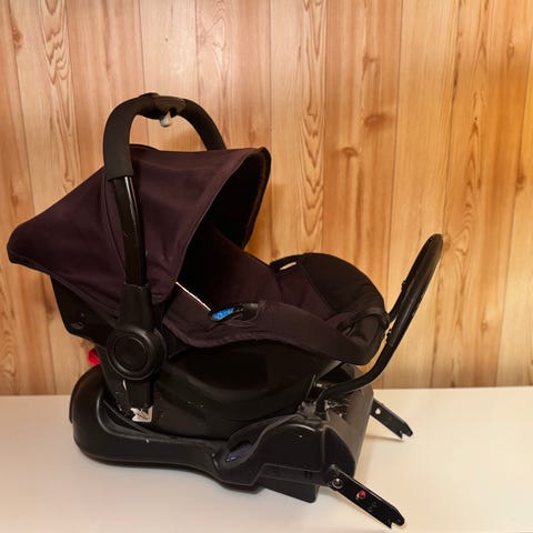 1. Bilbarnstol-hållare (Maxi Cose). Fjädrad metallram (”fits all”) som man kan sätta olika typer av baby-/barnstolar i. Skruvas fast i sittbrunnen.