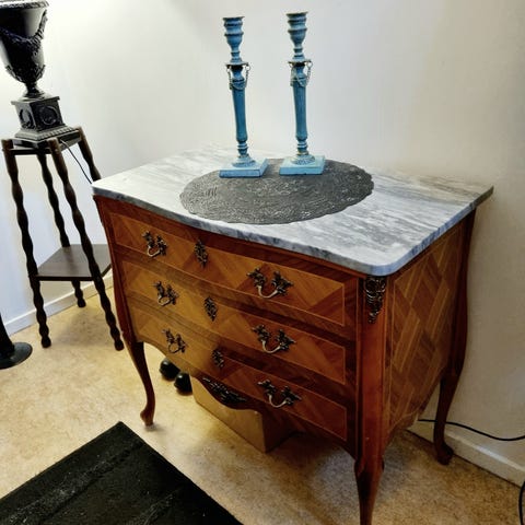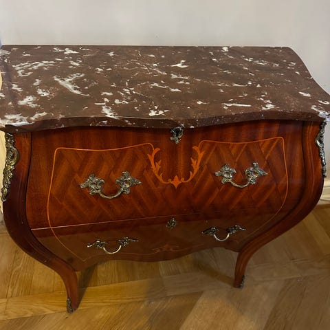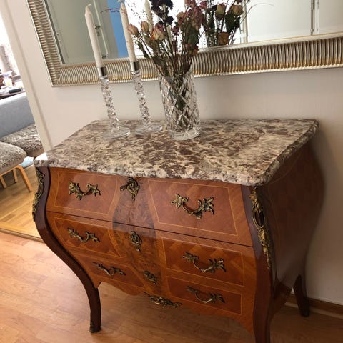 Rokokobyrå med marmorerad skiva