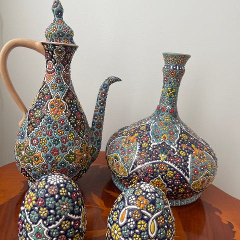 Målad i varma toner (aprikos, gul, lila) med svarta organiska linjer som ger ett exklusivt och designlikt uttryck. Perfekt som statement-piece i hemmet, både som kruka och som ren dekoration.