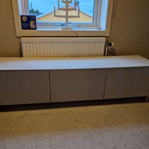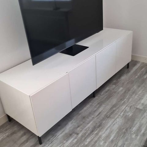 Tv-bänk från ikeas serie Bestå. Tyvärr finns inga fötter till då jag haft den ståendes direkt på golvet. Fint skick!