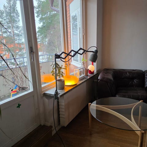 Klassisk skrivbordslampa Luxo L-1P arkitektlampa. Skrivbordslampa formgiven av Jac Jacobsen.