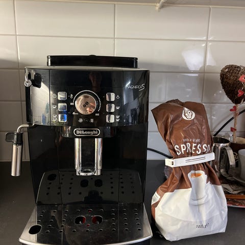 Det är en helautomatisk De'Longhi Magnifica S som maler bönorna färskt för varje kopp. Enkel att använda och gör fantastisk espresso och cappuccino.