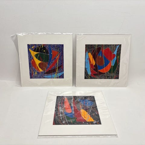 tavlor med abstrakt motiv i svart ram signerade de