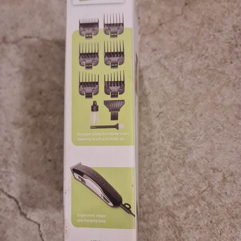 Moser Rex 1400 hårtrimmer med svart färg. Utrustad med sladd för strömförsörjning och levereras med tillbehör för olika klipplängder.