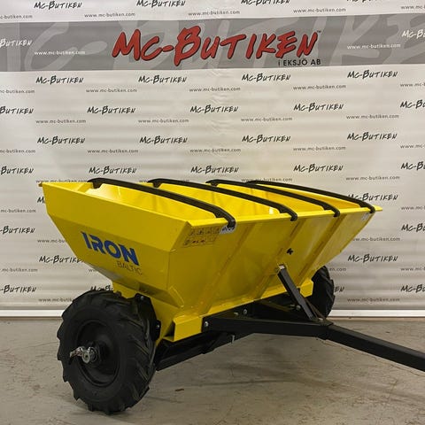 Japa Spridare i röd färg. Utrustad med hjul och dragstång för enkel transport. Används för att sprida material som grus, sand eller gödsel på markytor.