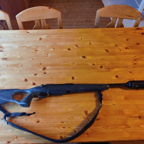 Komplett med ljuddämpare, ringar och sikte säljes för 20.000kr