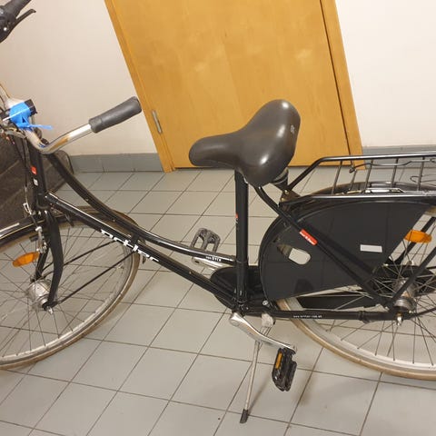Jag uppskattar ramstorleken till 58. Hjulstorlek 28". Pakethållaren där fram är väldigt ny och har knappt blivit använd, nypris på den var 1200.