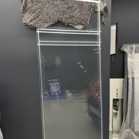 Två dörrar till duschhörna. Kommer med alla beslag och skruvar för att lätt montera. Finns att hämta i Sigtuna
