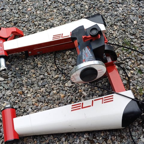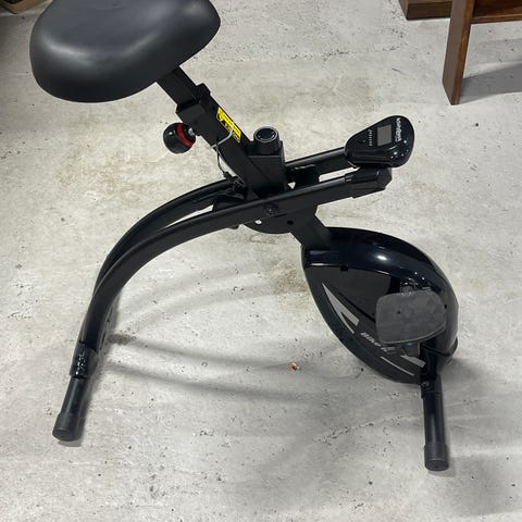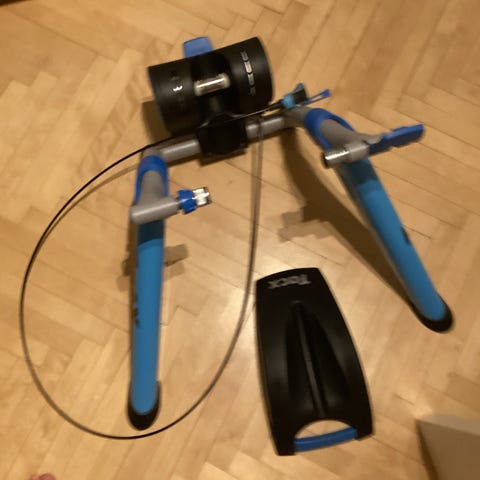 Crivit cykeltrainer i svart färg. Används för inomhusträning med cykel. Utrustad med justerbar spännanordning och stabil ram för att hålla cykeln på plats under träning.
